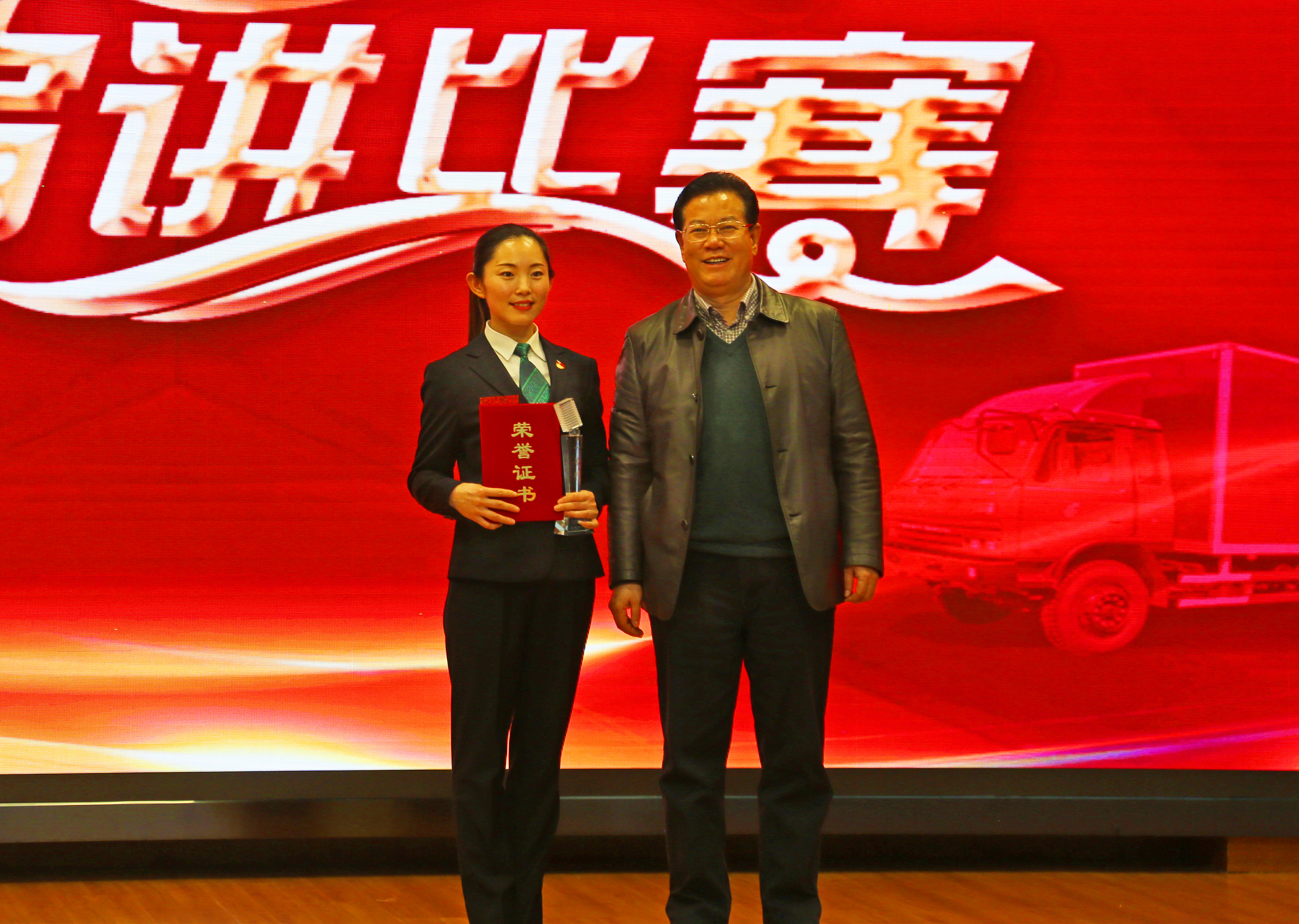 省分公司党组书记、总经理周新峰为一等奖获奖选手陈文文颁奖