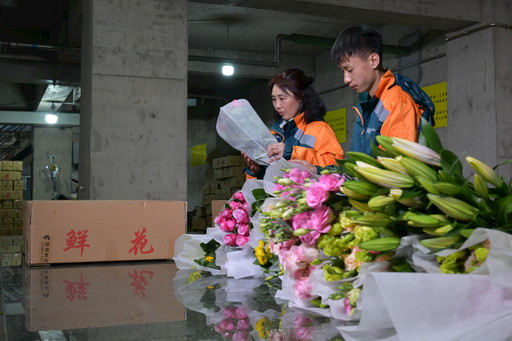 随着互联网的蓬勃发展,电商、直播等新的销售业态兴起,除了传统批发销售,线上下单、线下快递成为斗南鲜花走出云南、走向世界的又一主要渠道。但鲜花娇嫩,对包装技术和寄递时限的要求非常高,并不是所有快递企业都有那“金刚钻”能揽这“瓷器活”。因此,在斗南花卉市场,“赶活儿”的都是中国邮政和大型民营快递企业的“快递小哥”。