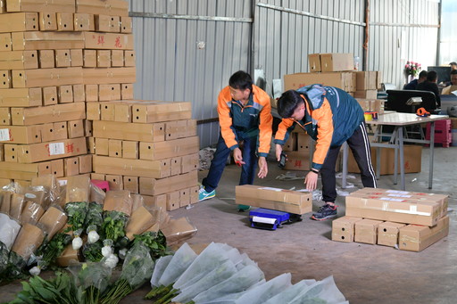 为保证鲜花的质量,寄递鲜花的包装箱是根据鲜花品类大小专门设计和定制的、适合快递运输的纸盒,可以将花束固定在纸盒上,避免长途运输过程中的晃动对鲜花造成损坏。“除了我们自己平台上的订单,由我们的团队进行鲜花组织、包装,还有客户是使用我们提供的场地、器材进行花艺搭配、组织包装,由我们负责寄递。”杨晓寒说,“我们有专车专人负责转运,根据鲜花邮件量选择车型,所有鲜花邮件都是当天收件、当天就发往处理中心,赶发邮航,确保时限。”