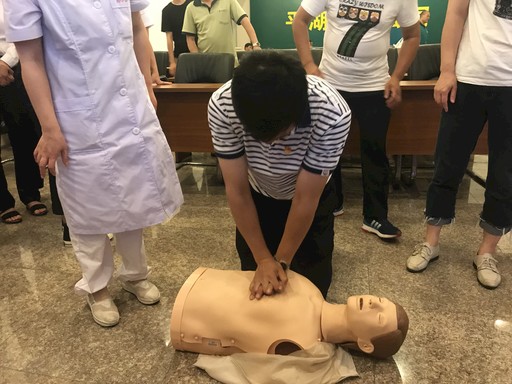培训中,急救培训师为大家详细讲解了应急救护知识,示范了急救技巧,参培人员体验了模拟应急救护;市消防大队教官结合日常工作,讲解了消防知识,并组织大家进行逃生演练。