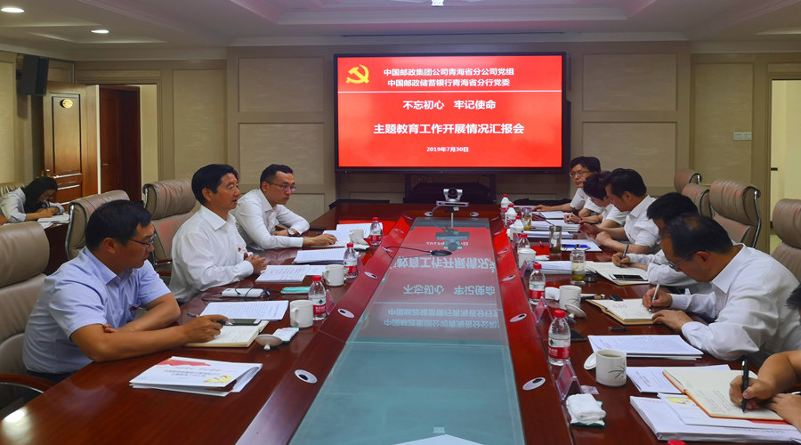 7月30日,集团公司党组“不忘初心、牢记使命”主题教育第一巡回指导组组长赵双占一行调研指导青海邮政企业主题教育开展工作情况。