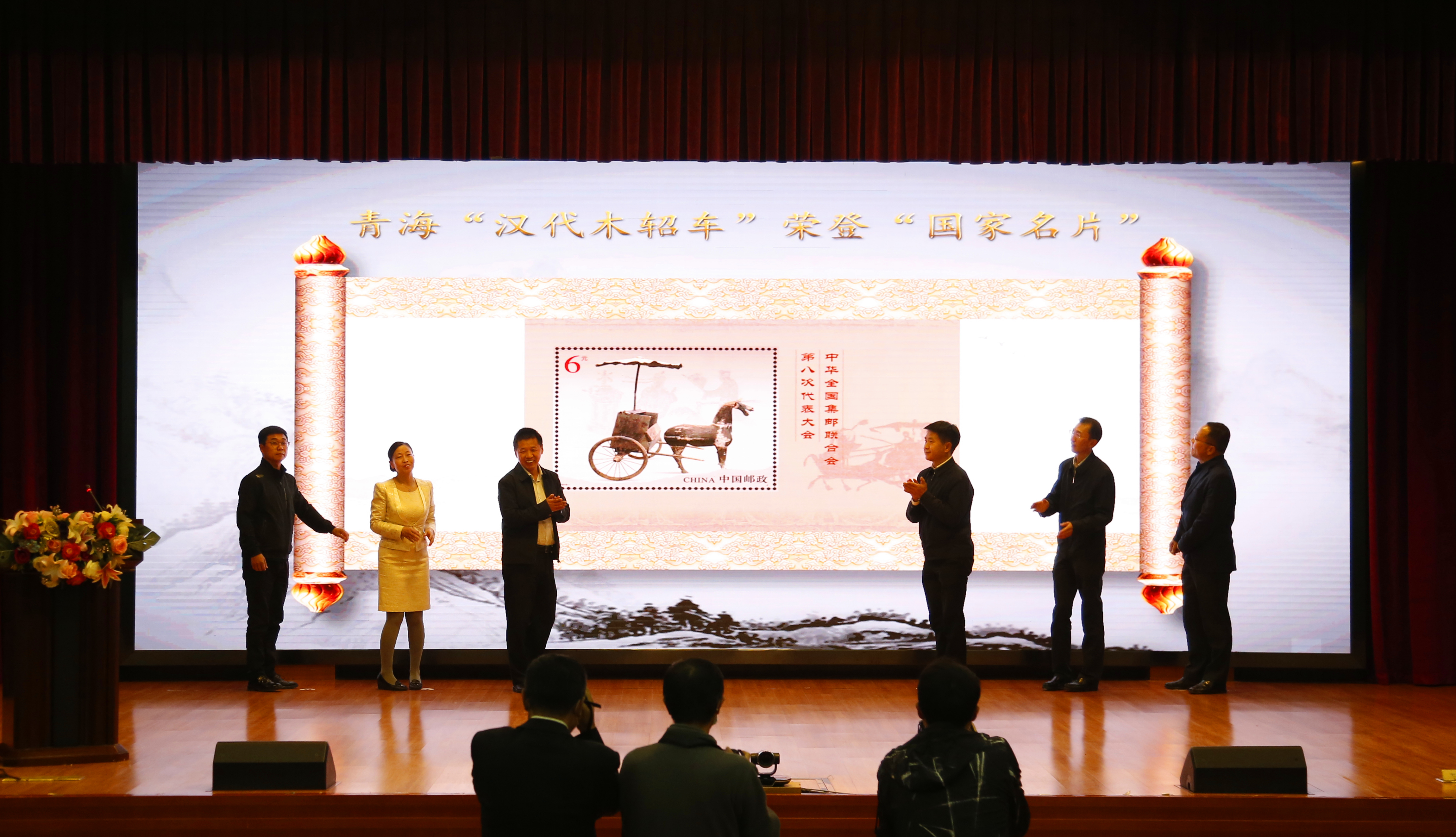 同日,由青海省委宣传部、省文化和旅游厅、省邮政管理局主办,青海省邮政分公司、省文物局、省博物馆、省集邮协会承办的庆祝青海“汉代木轺车”荣登“国家名片”暨《中华集邮联合会第八次代表大会》纪念邮票首发活动在西宁举行。省委宣传部副部长龚波、省文物局局长牛军、省邮政管理局局长赵群静,省邮政分公司总经理胡尔纲、副总经理王树桥等领导出席首发活动。