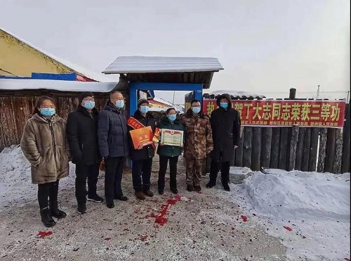 为其家人送上立功喜报和慰问金
