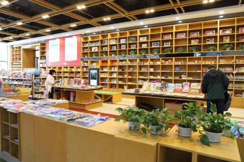 在支局深处的转角,是占据着支局一片天地的暖色,这里是期刊、文创产品等所在地,其中的党政图书专区格外显眼,孜孜不倦地传递党的声音。