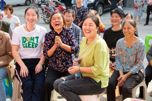 在七曜山中心支局局长董仕鑫的带动下,村民们磕着瓜子,听着换社保卡、邮乐优鲜团购等知识介绍,热火朝天地抢答问题,笑声伴着音乐飘进了风里。