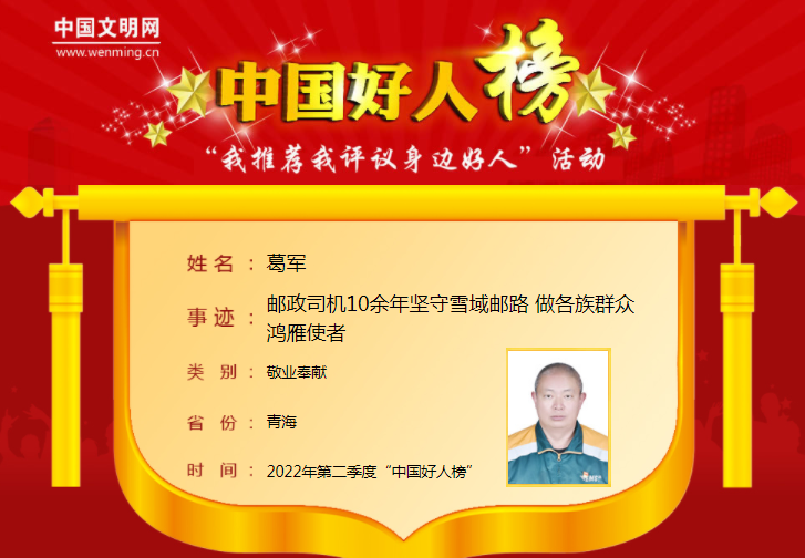 青海邮政葛军同志上榜!