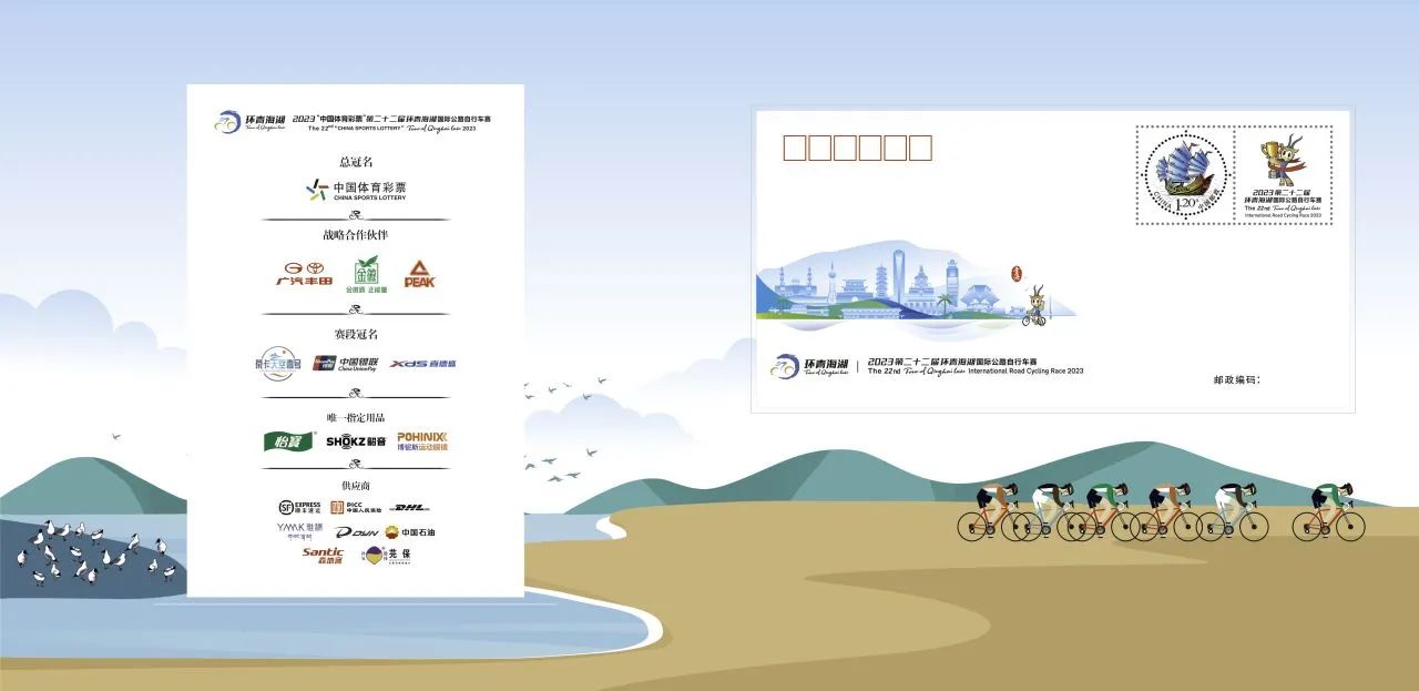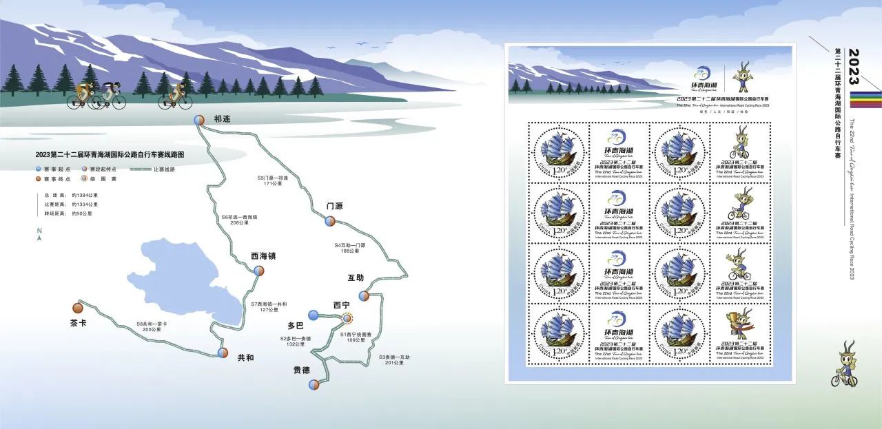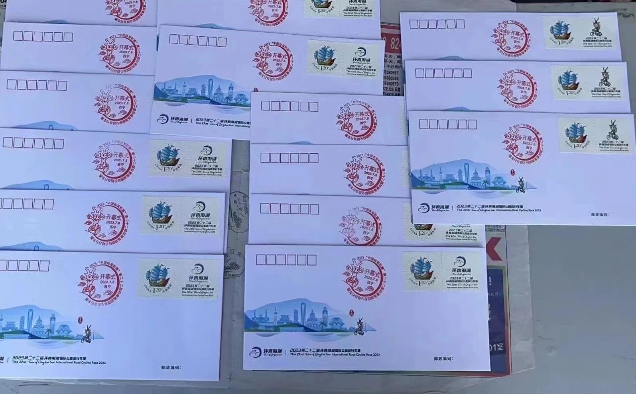 作为赛事组委会成员单位之一,今年是中国邮政集团有限公司青海省分公司服务和保障环湖赛的第22年。青海邮政与赛事组委会联合推出2023年第22届环湖赛纪念邮册、“环湖赛22周年”纪念大、小版册、纪念封和明信片等十余种赛事纪念品。此外,还特别制作了环湖赛流动邮局营业邮戳和各赛段的纪念邮戳。