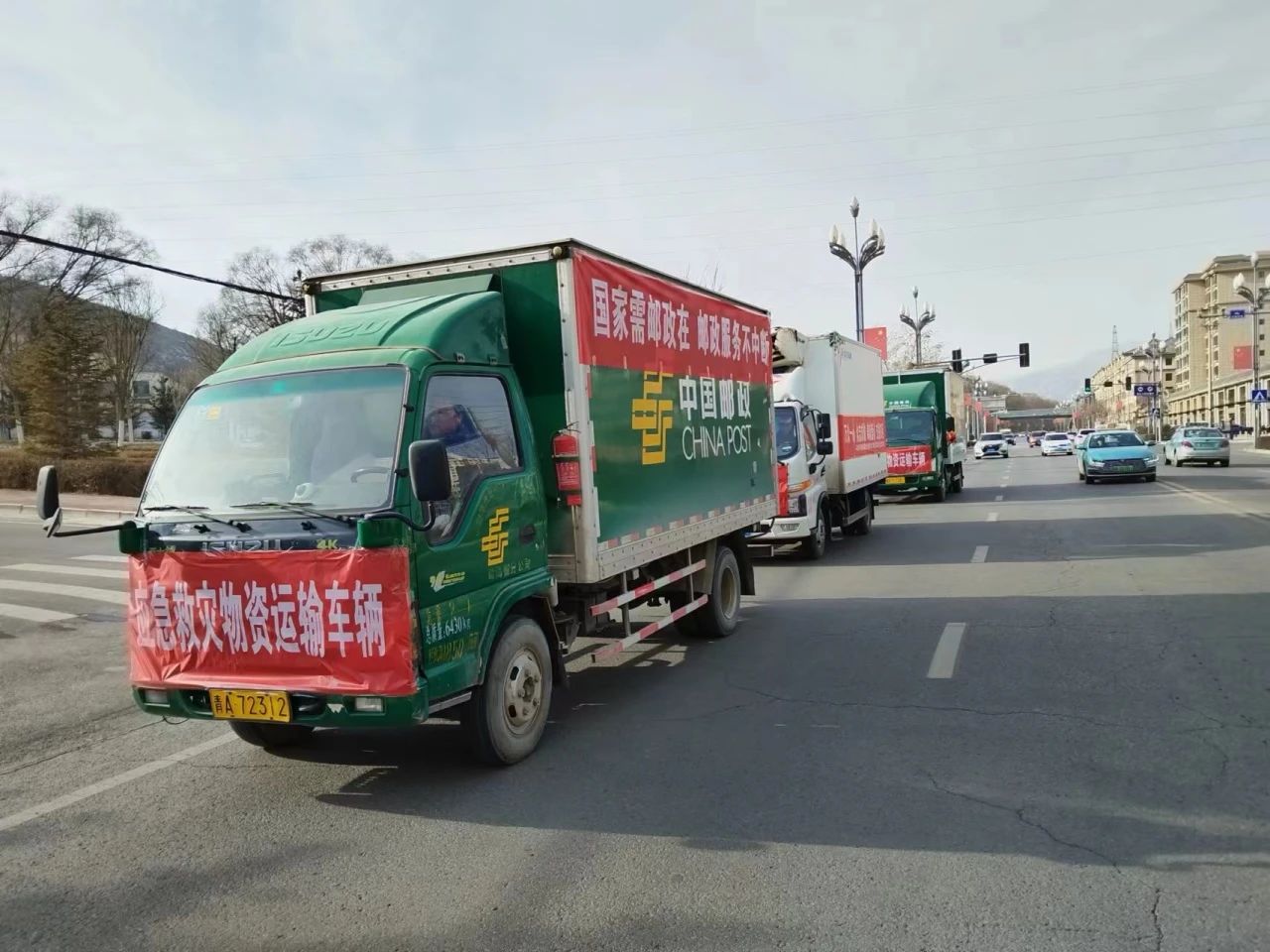 紧急调配邮政车辆,向灾区运送救灾物资