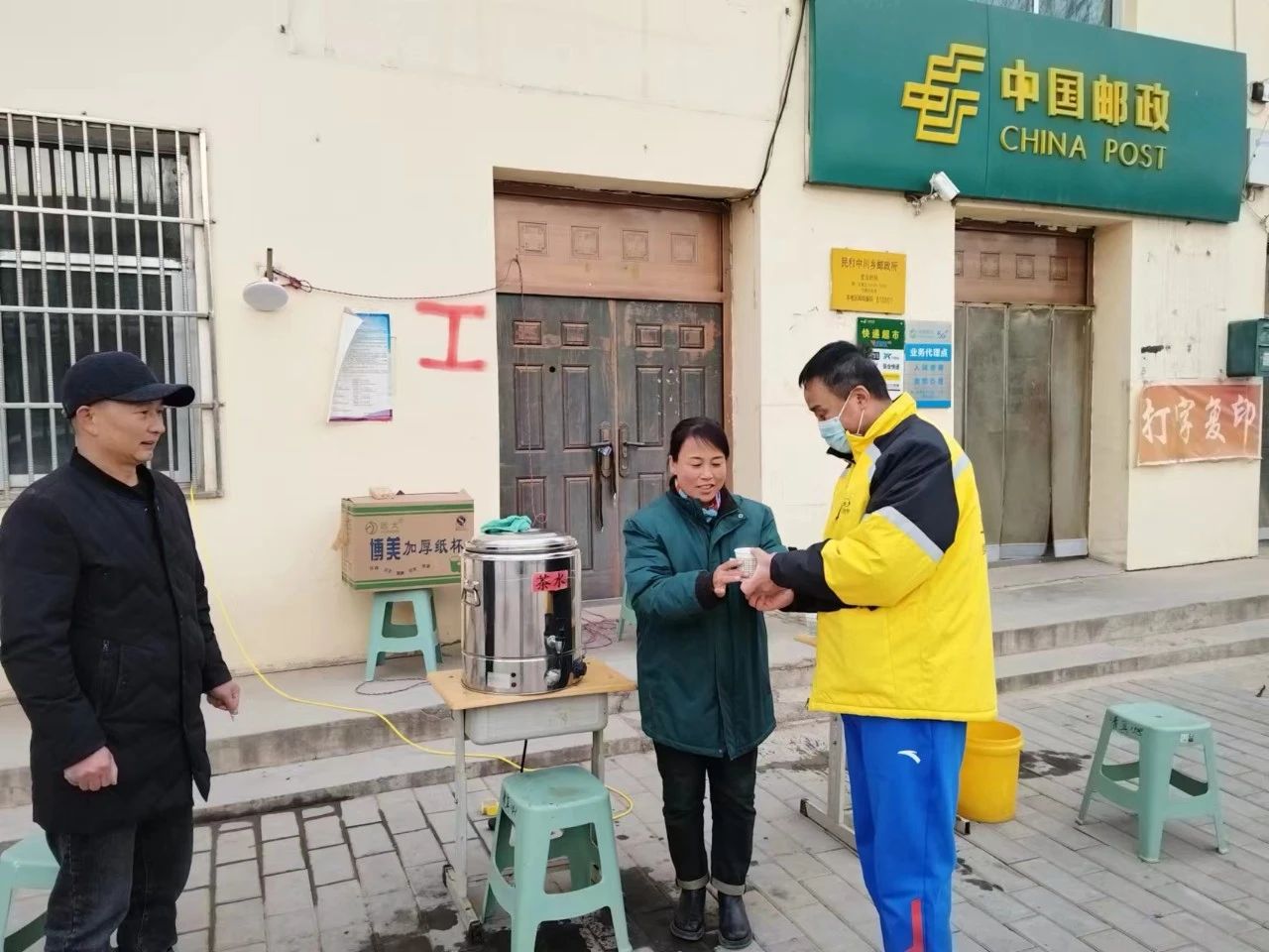 在邮政所门口搭设便民服务点