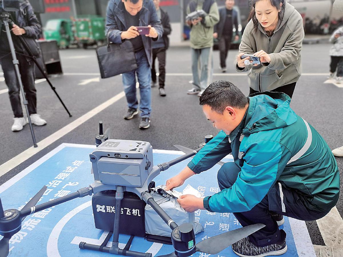 3月23日,由湖北省十堰市茅箭区打造的湖北首条低空物流配送路线在十堰市邮政分公司城区火车站营业部成功完成首飞,这是湖北首单通过无人机配送到山区的邮政快递。