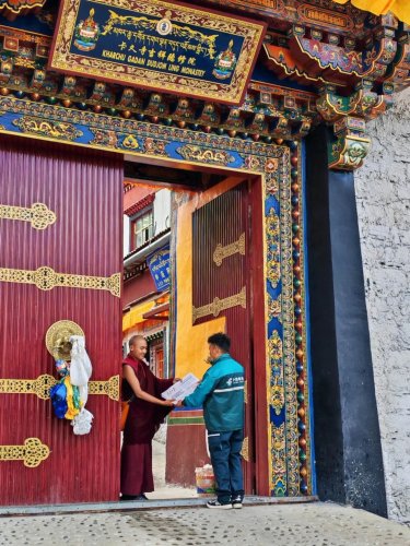 步行10分钟,罗布多吉来到拉郊乡政府,将《人民日报》和邮件送达后,便驱车前往德玛龙村。