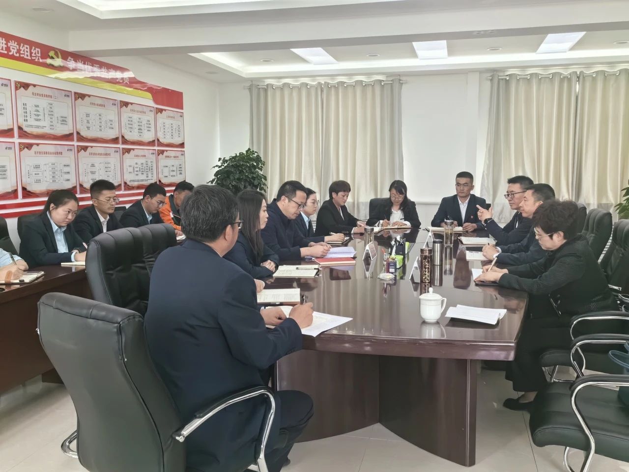 参观结束后,省分公司党委书记、总经理郭雨声在海北州分公司会议室主持召开2024年第6次党委理论中心组学习暨党纪学习教育集体学习会议,按计划扎实完成各项学习内容。省分公司党委成员、海北州分公司党委书记围绕实地研学内容开展了专题研讨。