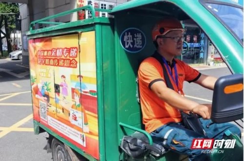 7月19日,早上八点,户外温度已超过30℃,在常德市西区揽投部,快递员何中清已经忙着卸货、分拣、扫描和装车了,不长的时间汗水便将工作服打湿。何中清是该网点资历最老的快递员,从事邮政快递行业已有十六年时间。九点,何中清驾驶着三轮车,带上公司配备的防暑装备,开启了他一天的“City Walk”。
