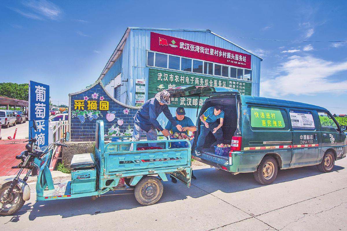 在鲜桃销售旺季,湖北省武汉市蔡甸区邮政分公司通过社区团购以及邮政网点、村级综合便民服务站展销等多种方式组织订单,全面助力当地专业合作社的鲜桃销售。该分公司指定专人对接合作社电商运营团队,组织寄递服务专班,实行专班专人分拣、专车物流配送、订单即时跟踪,及时将鲜桃送达客户手中。截至7月底,蔡甸区分公司开展电商直播6场、社区团购15场,助农销售额达32万元。