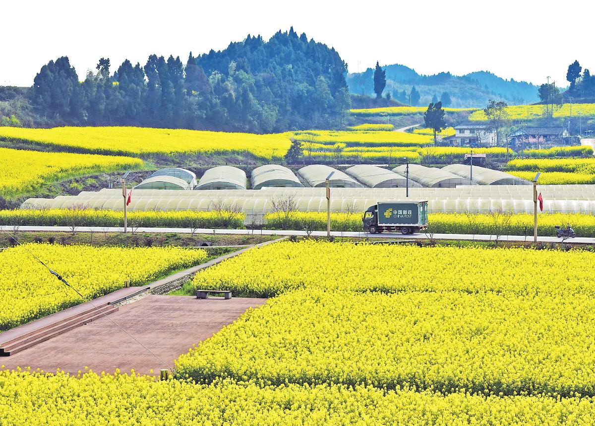 邮车畅行于沃野阡陌,承载着乡村振兴的希望。 □曾祥文 摄